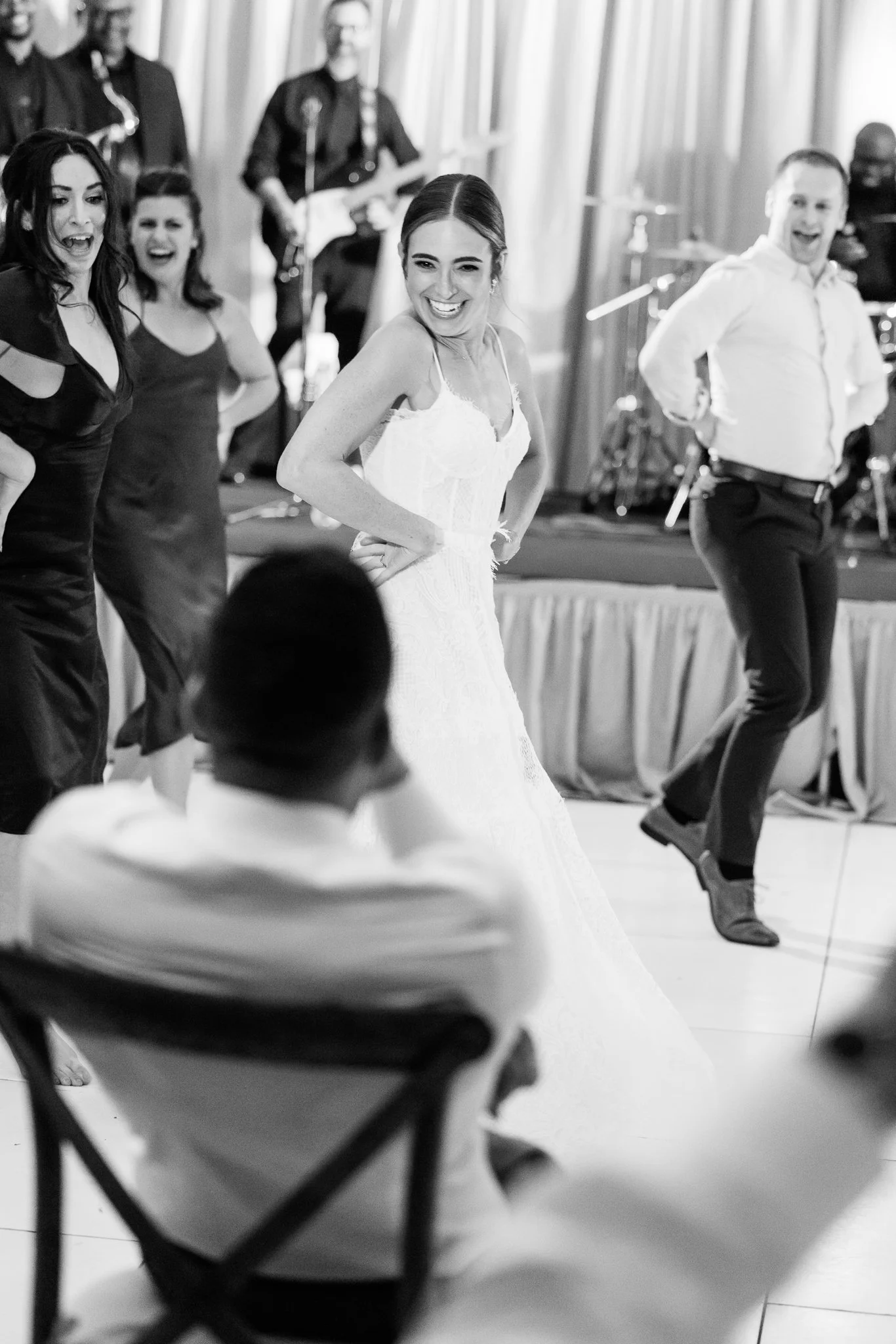 Part Two: I pulled off the surprise dance of all surprises ; ). Because so many of my friends are trained & professional dancers, I knew I had to do something unique. I sent them instructions and videos of choreography to learn on their own. They had one rehearsal without me, and we miraculously nailed it. My husband was in absolute shock and our guests are still talking about it to this day.